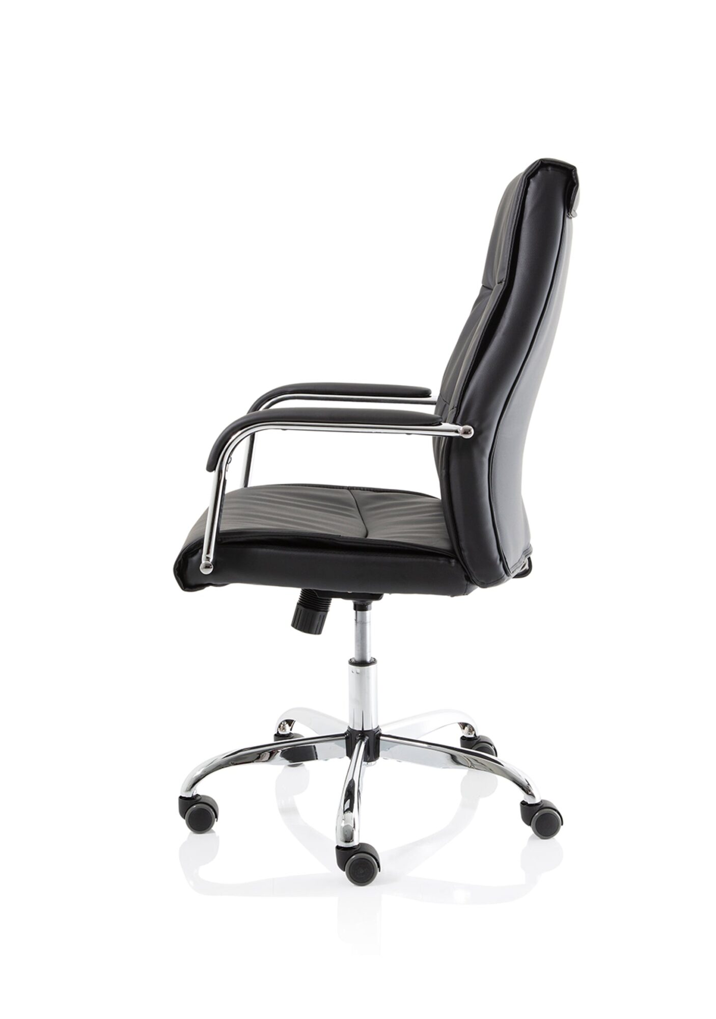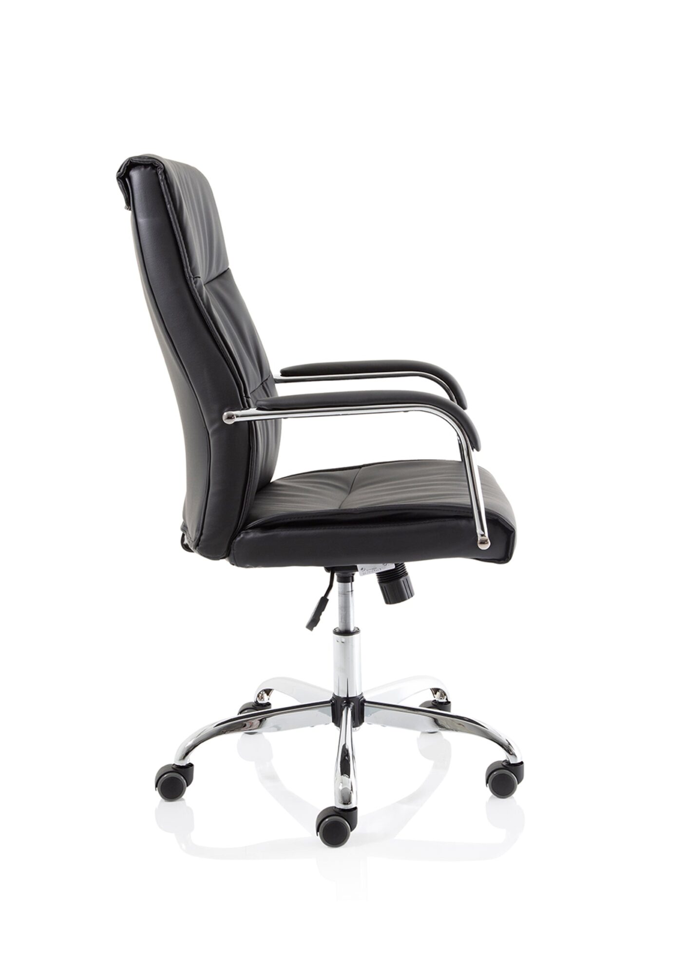 Luxury at a fraction of the usual cost. This high back Carter chair in faux leather has stitch detailing, deep foams and a padded armrest on a chrome frame. A clear case of “Get Carter.”