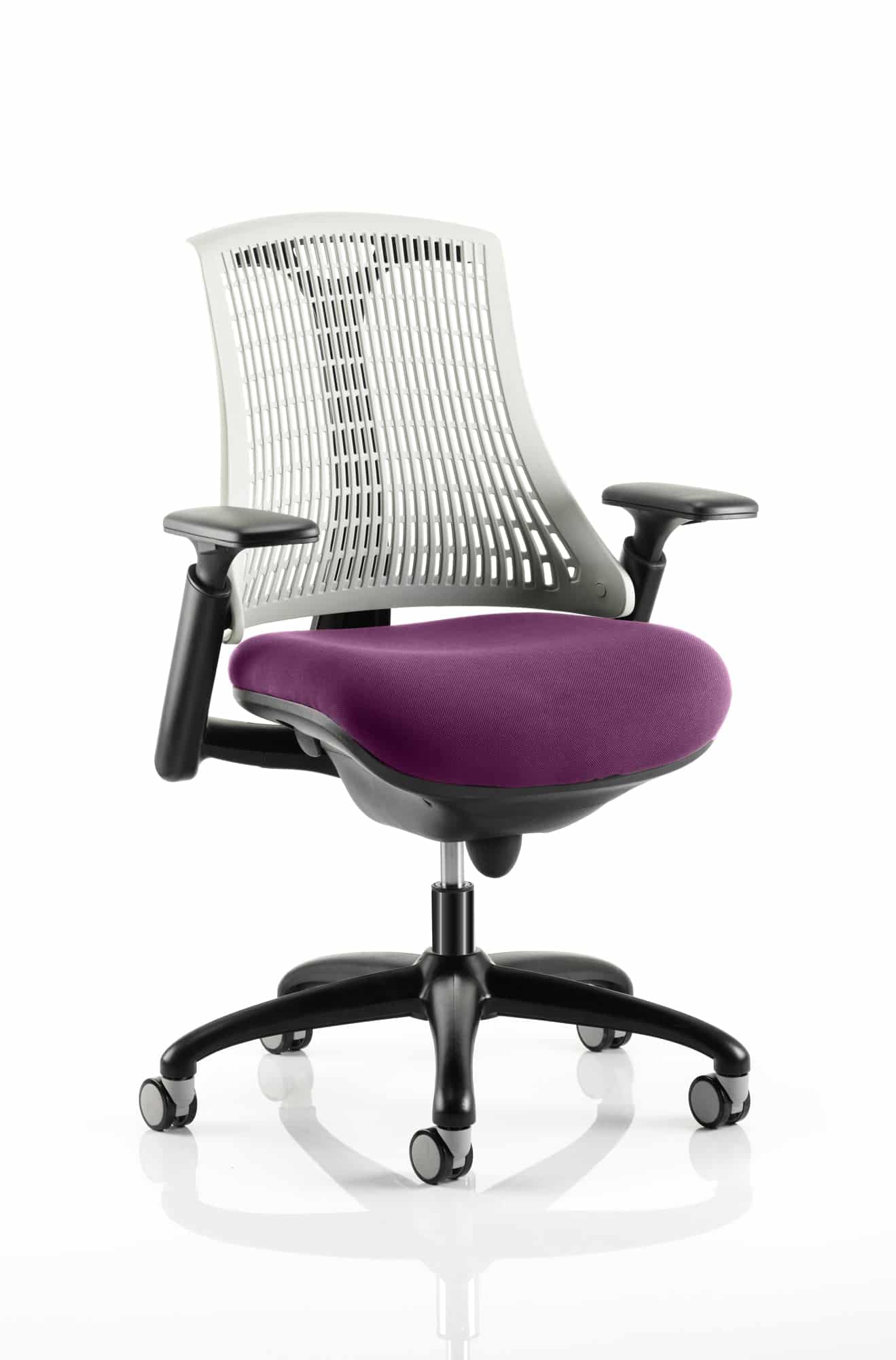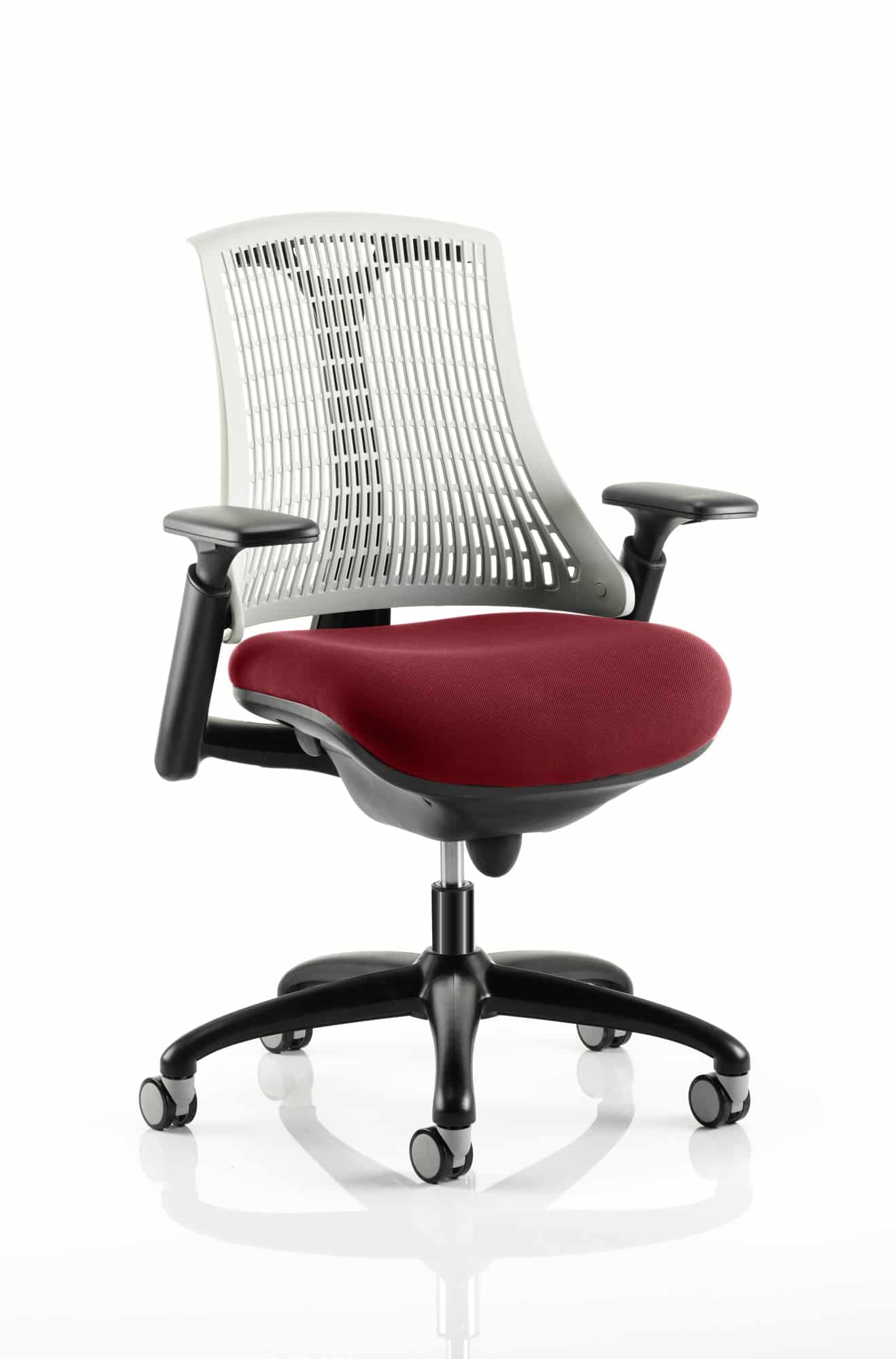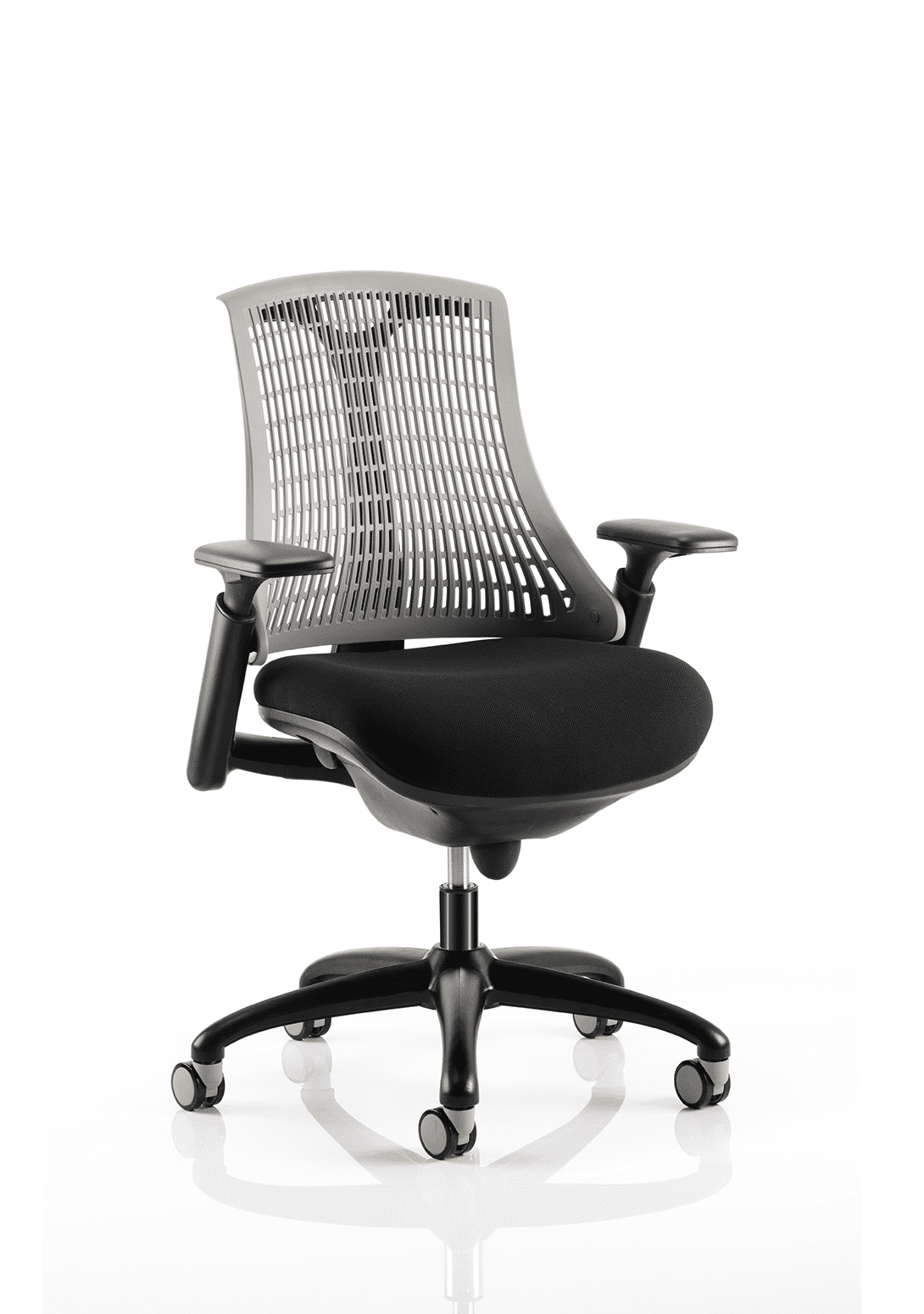 The Flex uses modern materials to create a chair that is practical and innovative with features such as pliable and flexible backrest, adjustable gel padded arms, a large cushioned seat with waterfall front and an enclosed mechanism.