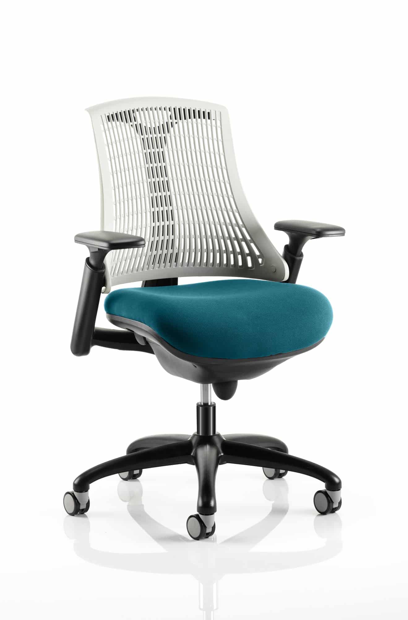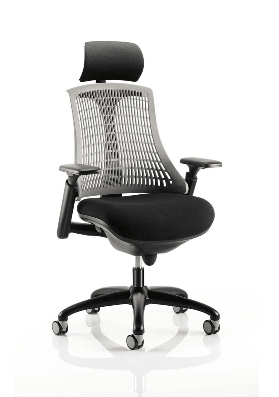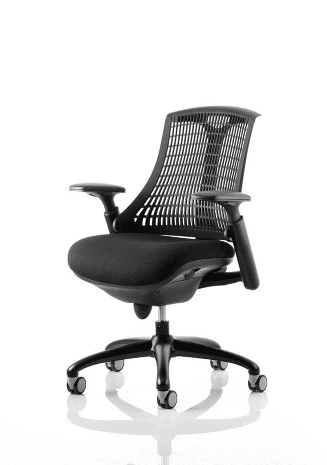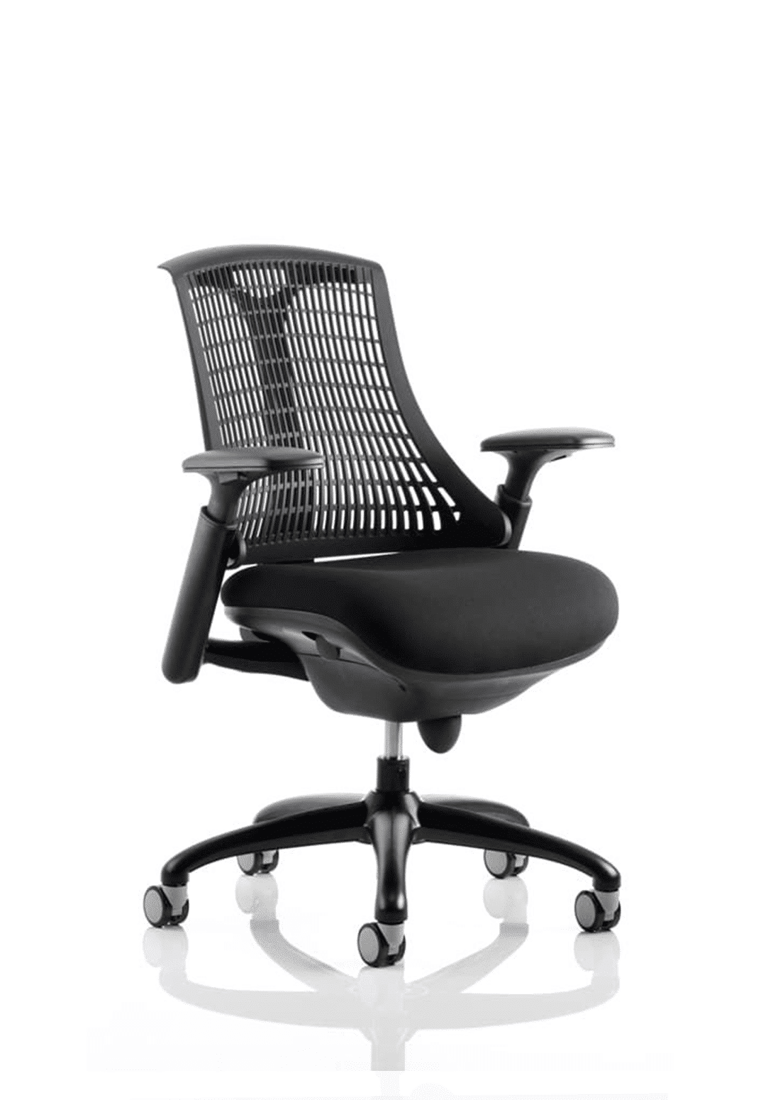 The Flex uses modern materials to create a chair that is practical and innovative with features such as pliable and flexible backrest, adjustable gel padded arms, a large cushioned seat with waterfall front and an enclosed mechanism.