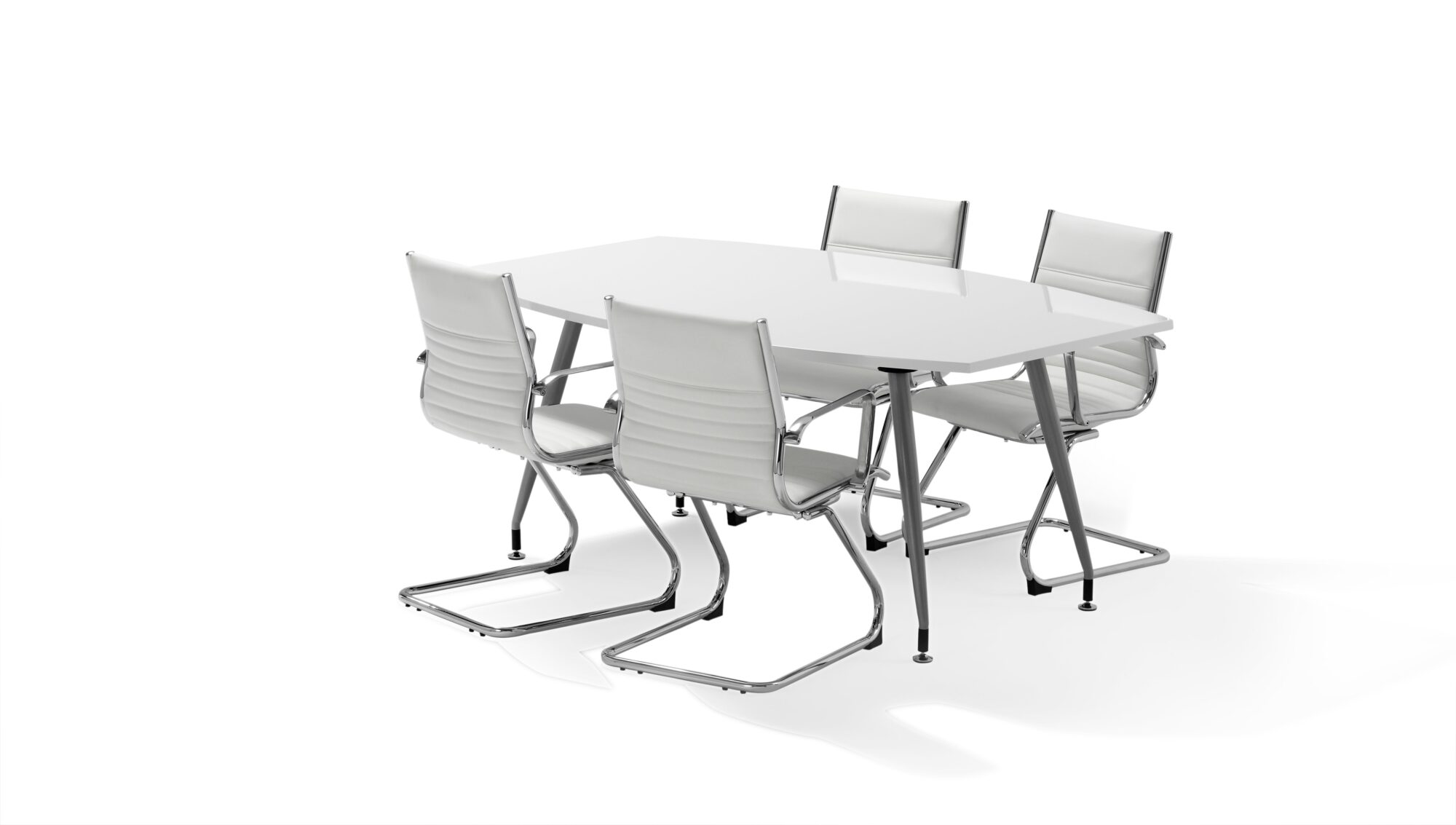 Elegant high gloss polished tops | Large seating area | Stylish tip to toe leg detail | Silver legs |Boat shaped for better team working | Height adjustments to feet | High sheen black finish