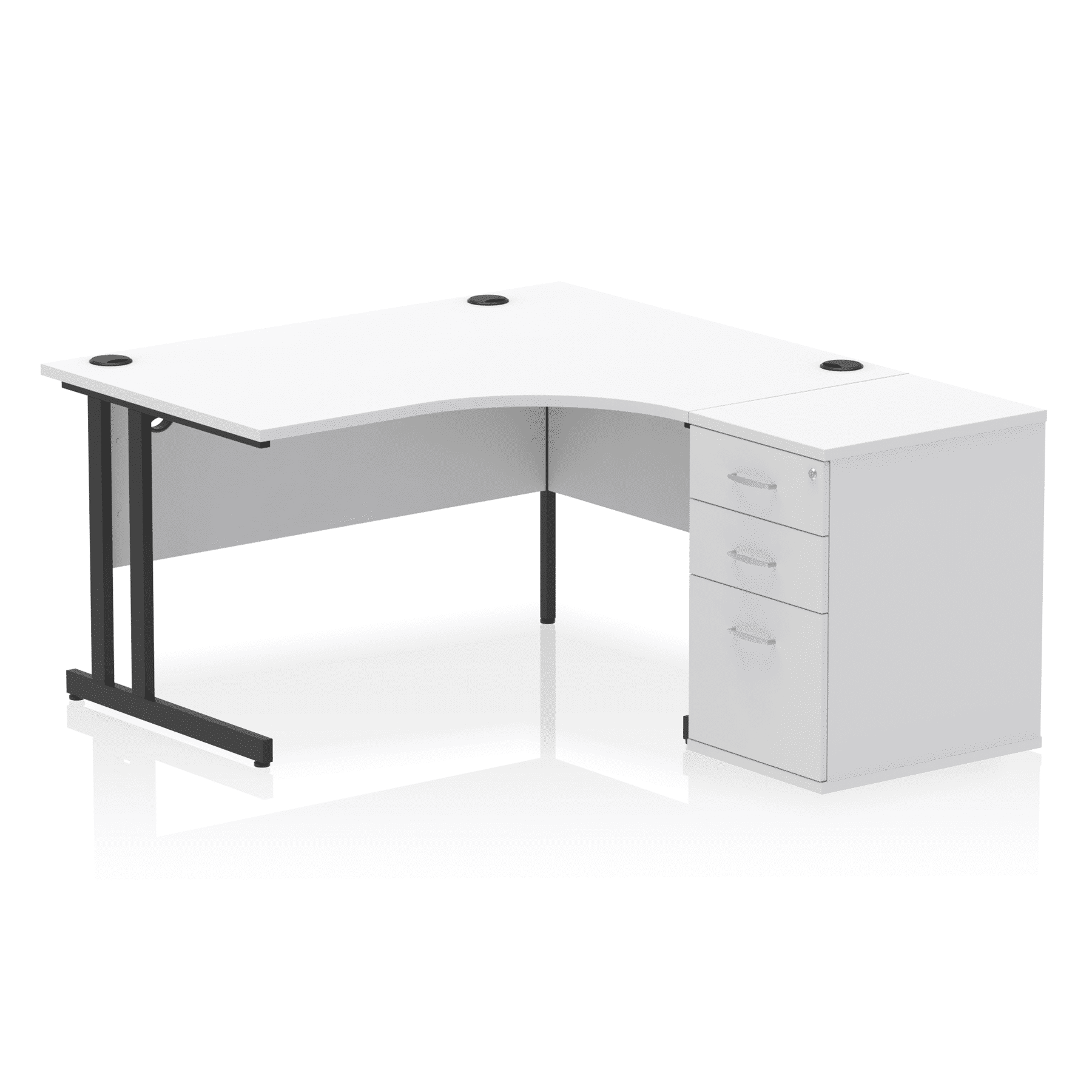 • Impulse contract 1400 wide desk • 25mm tops • Heat resistant melamine finish • 18mm modesty panels • 2mm protective abs edging • Cable managed legs • 2 cable ports • Height adjustable feet • Steel to steel fixings • 2 modesty panels slots • Deep set modesty panel (5″) allows for compatibility of most screen clamp fittings • Fixed pedestal