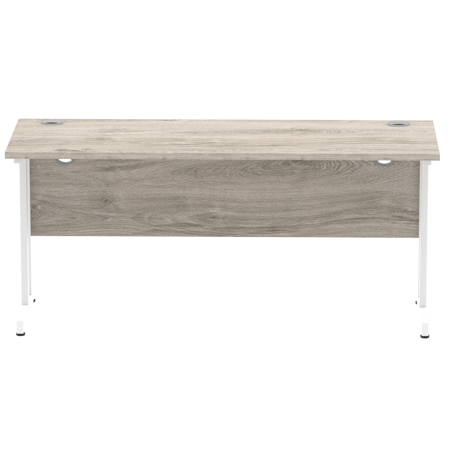 Impulse contract desk | 25mm tops | Heat resistant melamine finish | 18mm modesty panels | 2mm protective abs edging | Silver coated double strut legs | 2 cable ports | Height adjustable feet | Steel to steel fixings | 2 modesty panels slots Deep set modesty panel (5″) allows for compatibility of most screen clamp fittings | Weight Capacity 135Kg