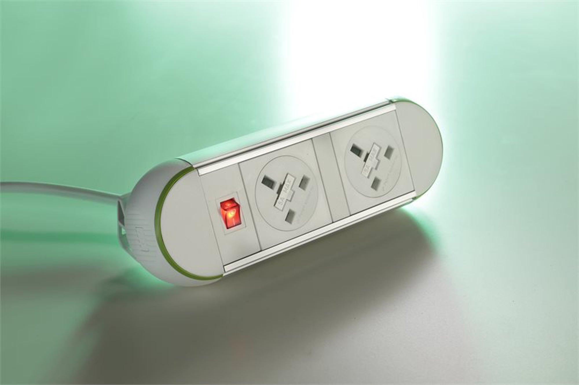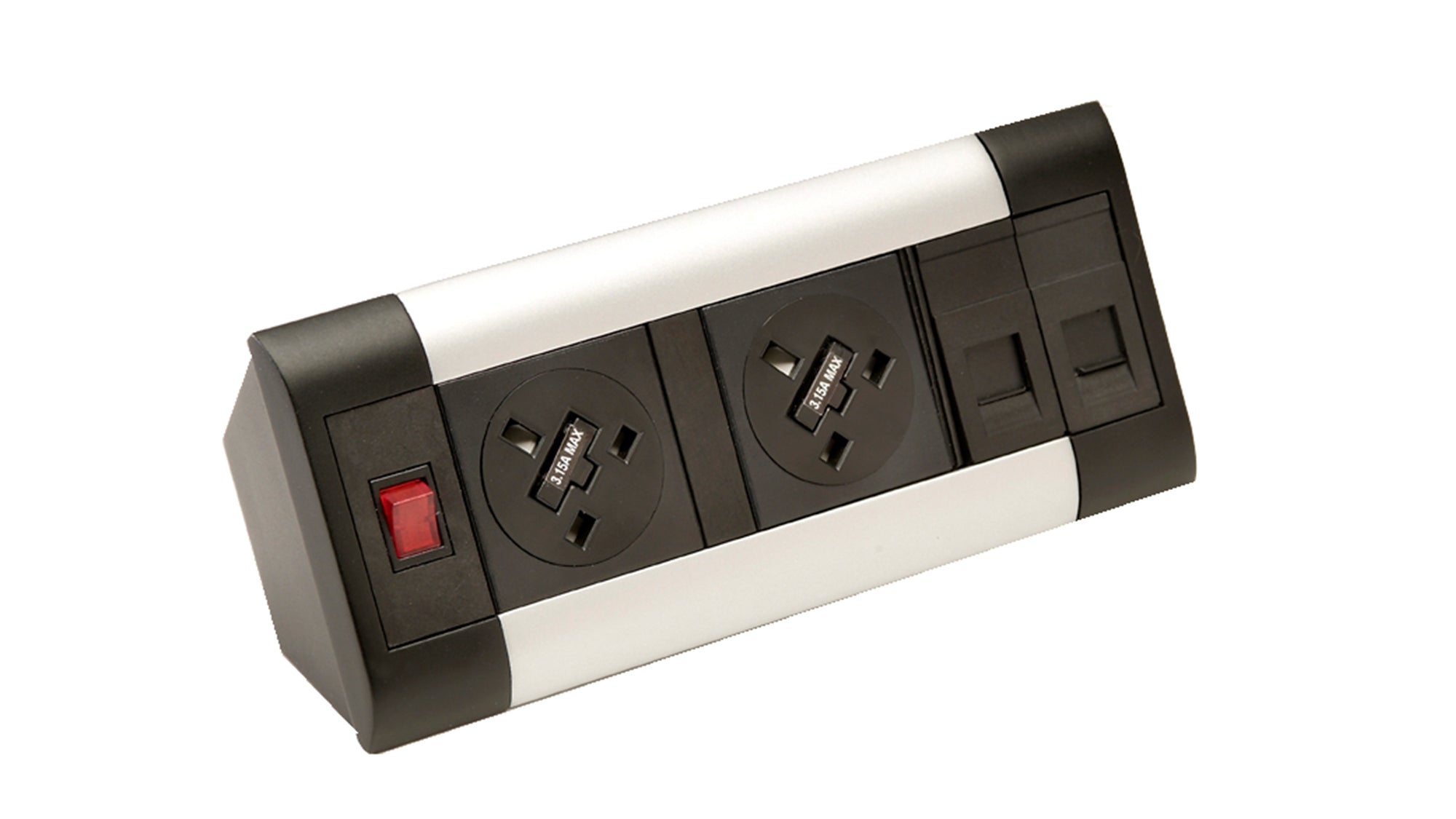 Impulse Desktop Module 2 x 3.15A UK Sockets, 1 x Neon Switch, 1 x 500mm Lead to 3 Pole Connector in Black