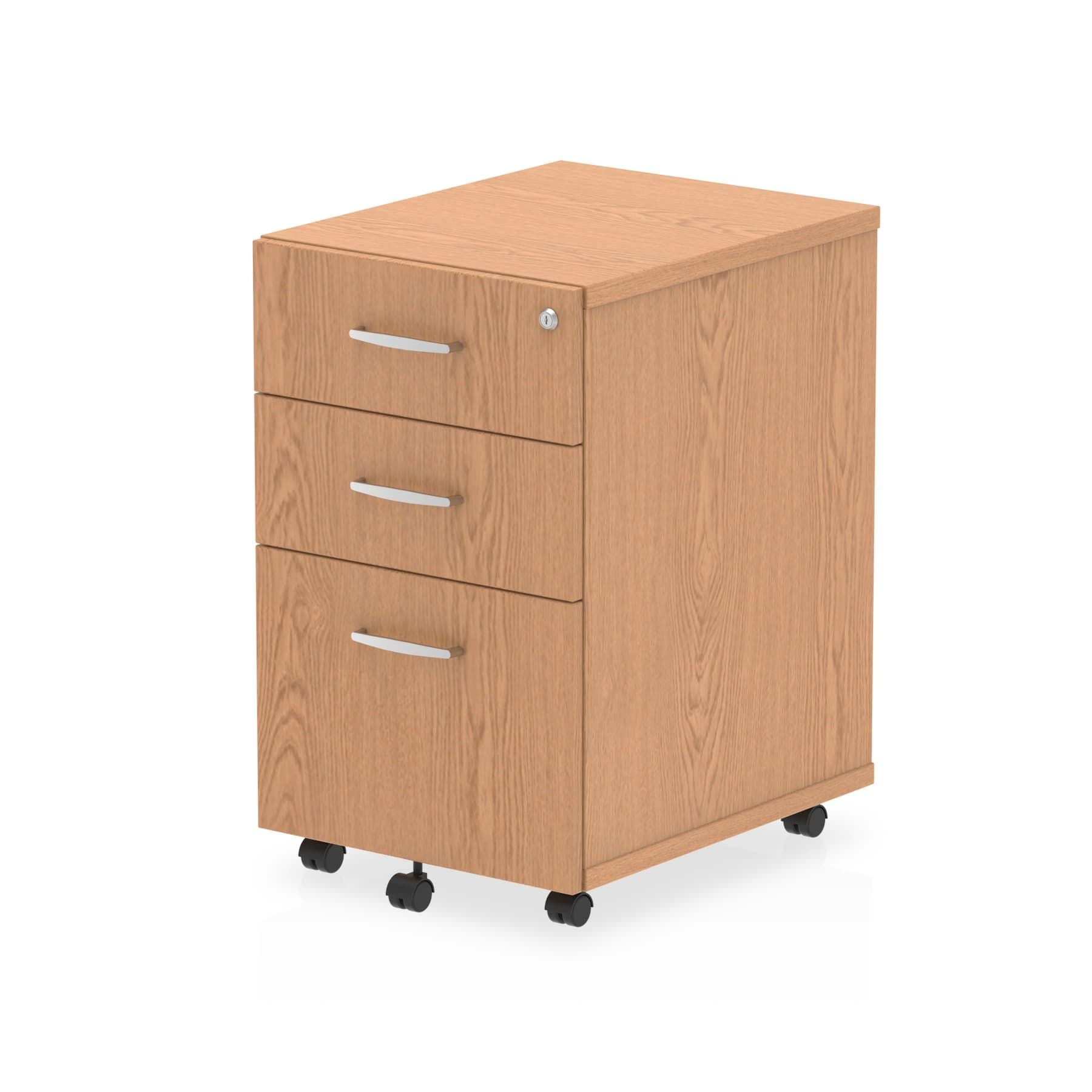 Impulse under desk pedestal | 25mm top | Full 18mm back board | 2mm abs protective edges | Steel handles | Solid box drawer construction | Fits A4 or foolscap filing | Smooth running castors for mobility | Steel to steel fixings | Lockable drawers | Heat resistant melamine finish