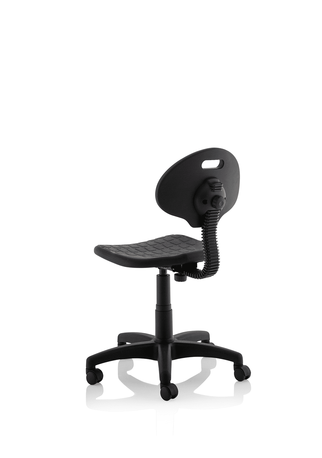 • Ideal for industrial use, such as food and medical industries • Cushioned polyurethane seat and backrest • Ergonomic with a tilting back mechanism • Permanent contact back • Seat depth adjustment • Backrest height adjustment • Can be washed or steam cleaned