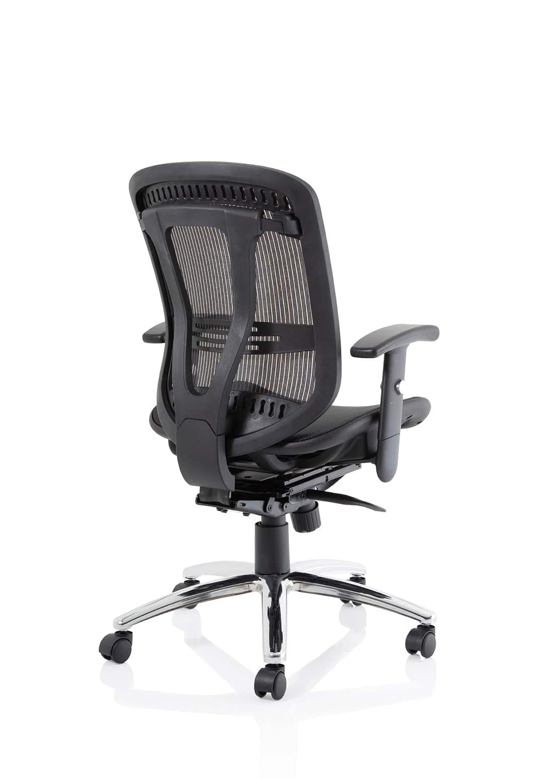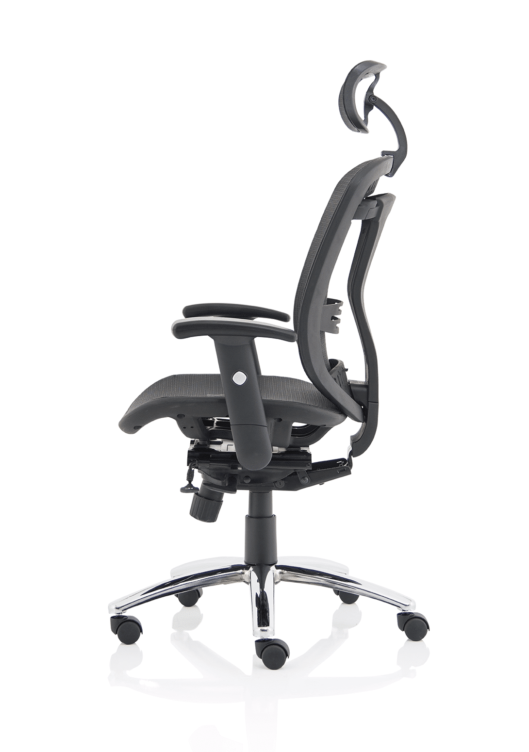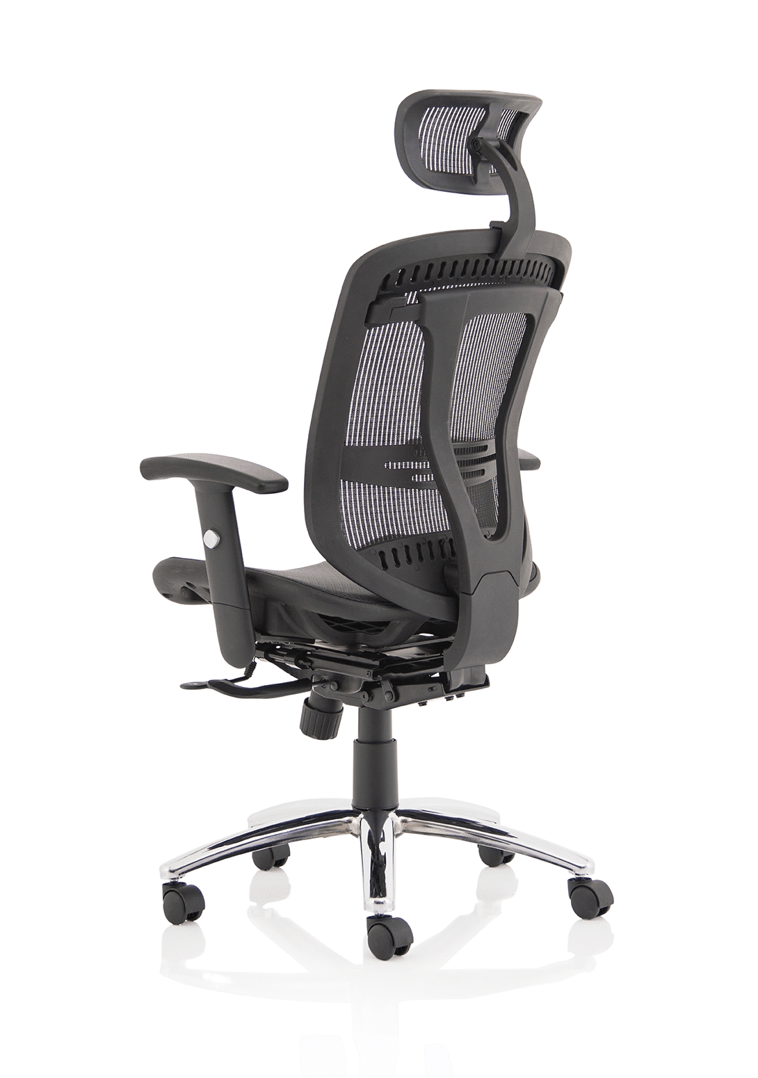 • Comfortable sprung mesh back and seat • Adjustable arms as standard • Infinite lock mechanism • Lumbar support • Adjustable headrest • Seat slide • Headrest