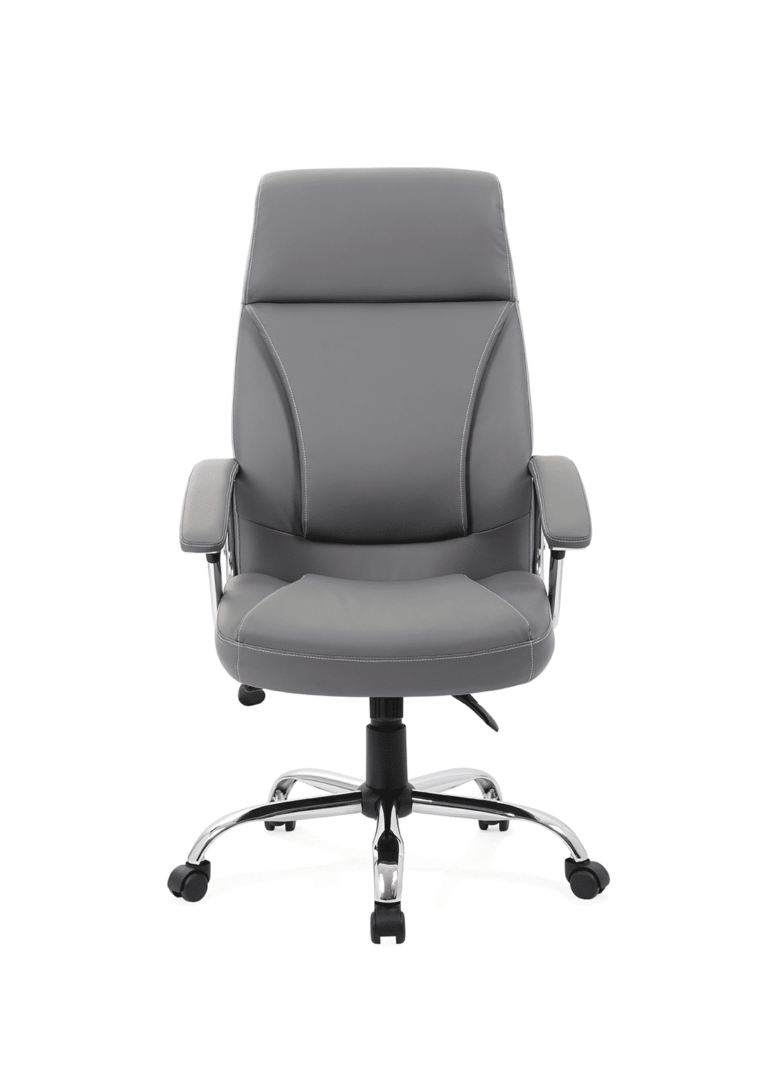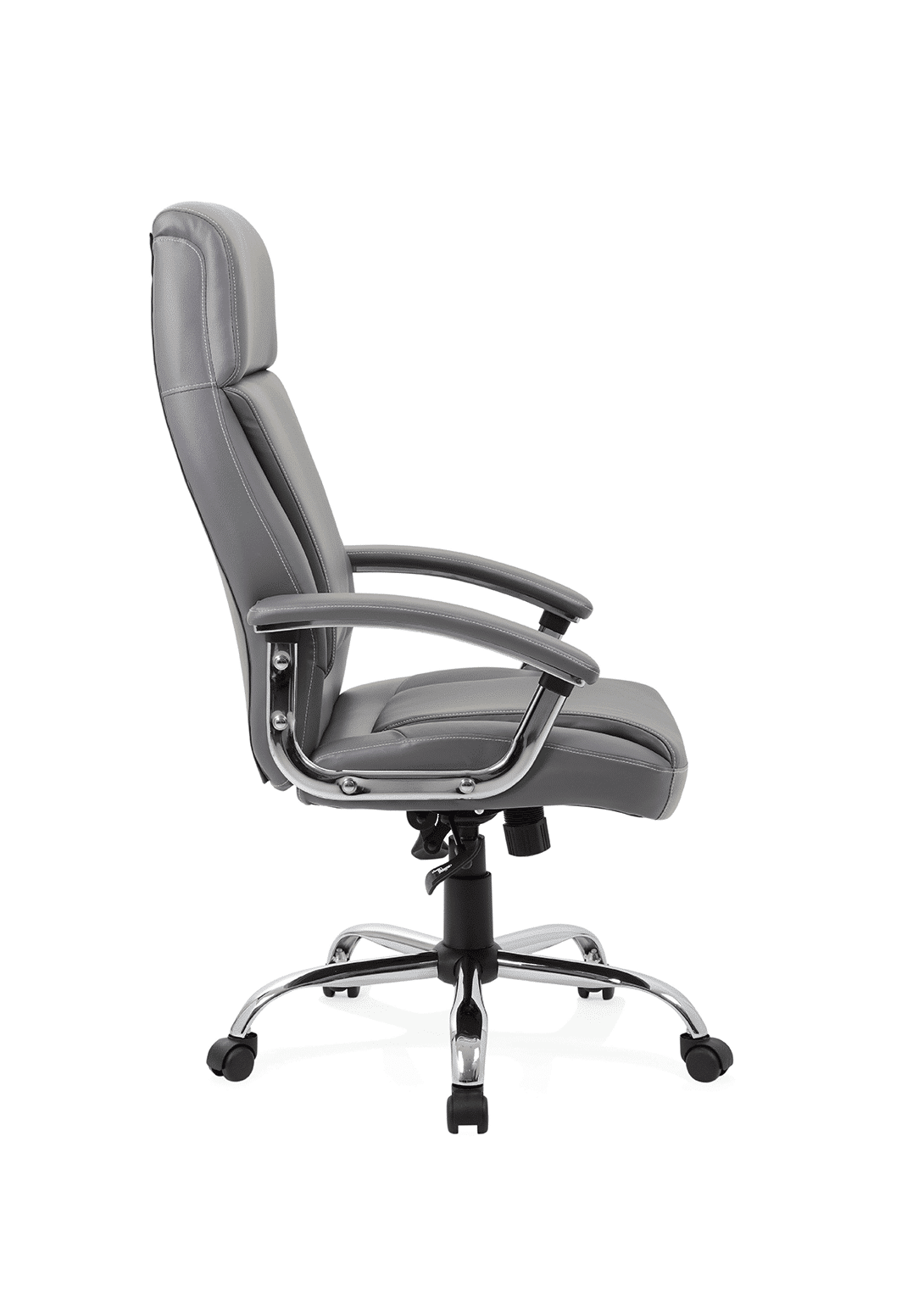 A luxurious bonded leather and chrome executive chair with comfort pads, tilting action and stylish stitching detail. Integral padded headrest.