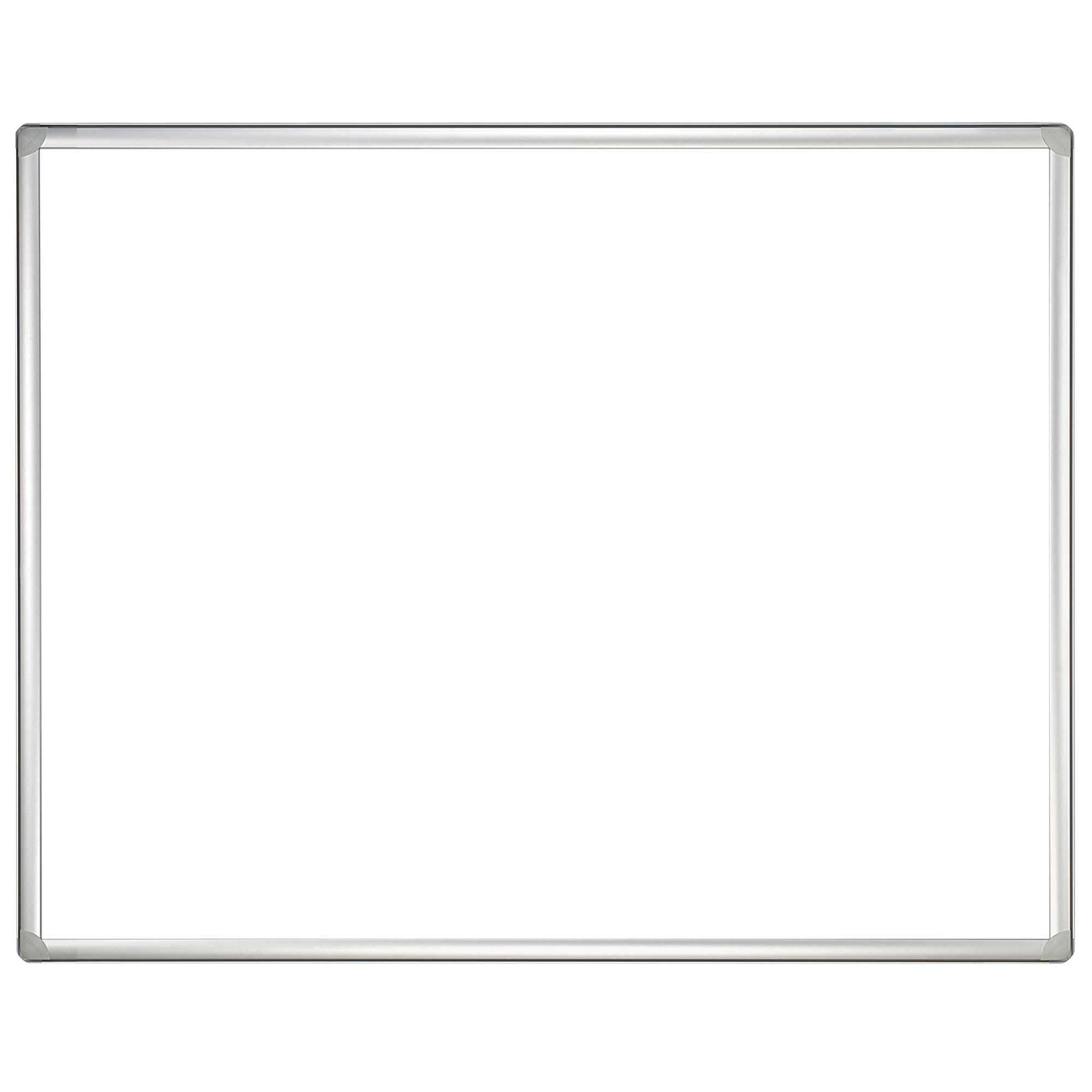 • Double-sided board, magnetic, drywipe, lacquered steel surface • The installation is simple and easy! The board is safely secured to the wall using a wall mounting rail (included in packaging) instead of usual corner fixings • The specially designed Proline frame allows the user to attach and remove the board from the wall rail with no tools required • The board can be easily switched from portrait to landscape format with no effort! • Lightweight construction, up to 30% lighter than other panels of the same size • High-quality, silver-anodised aluminum frame with light gray plastic corners and marker tray • Board size: 150 x 120 cm