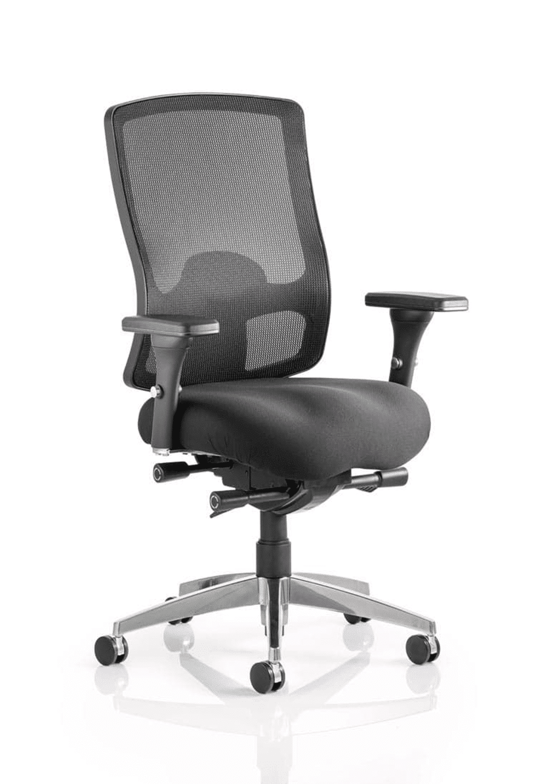 The Regent is ergonomically designed and has a luxurious cold cure foam seat that provides a pleasant seating experience for the most demanding environments. The chair has many adjustment options thanks to its quality multi functional mechanism and soft adjustable armrests. The stylish high backrest which is upholstered in a breathable mesh is easily height adjustable and equipped with a height adjustable lumbar support. Finished elegantly with a brushed aluminium base, this chair is the all round solution.