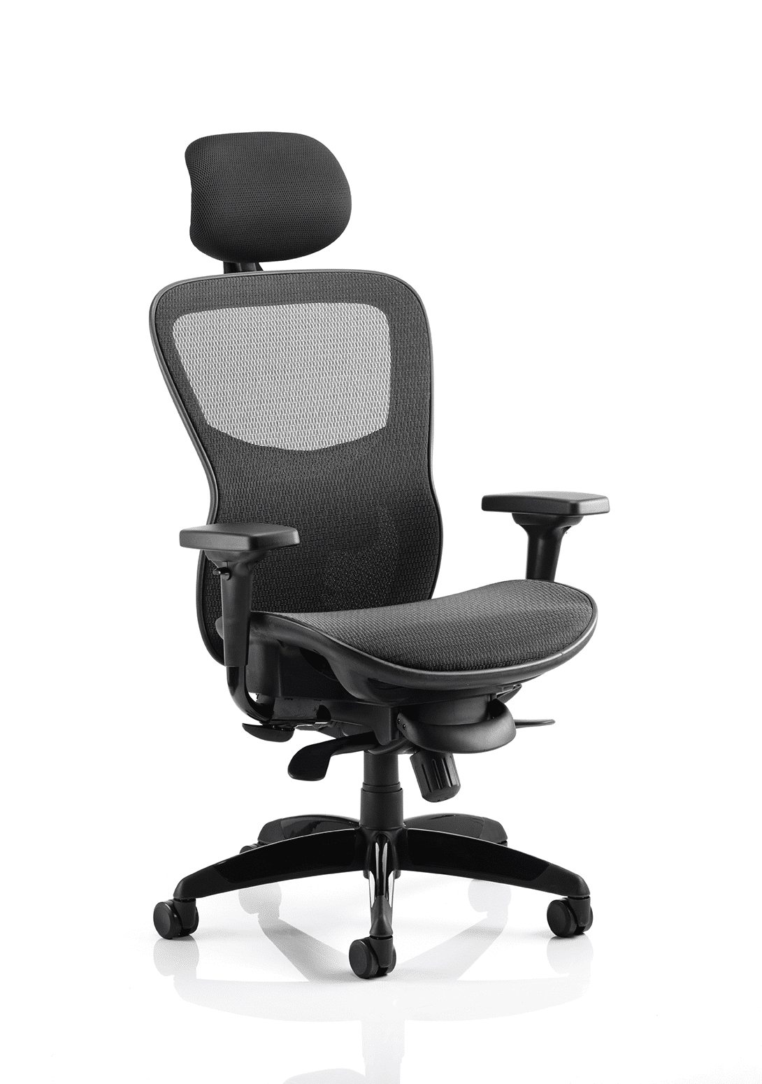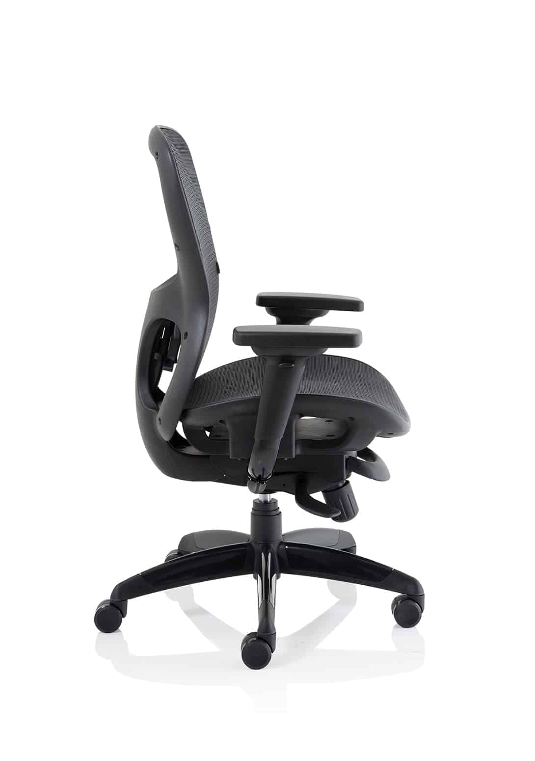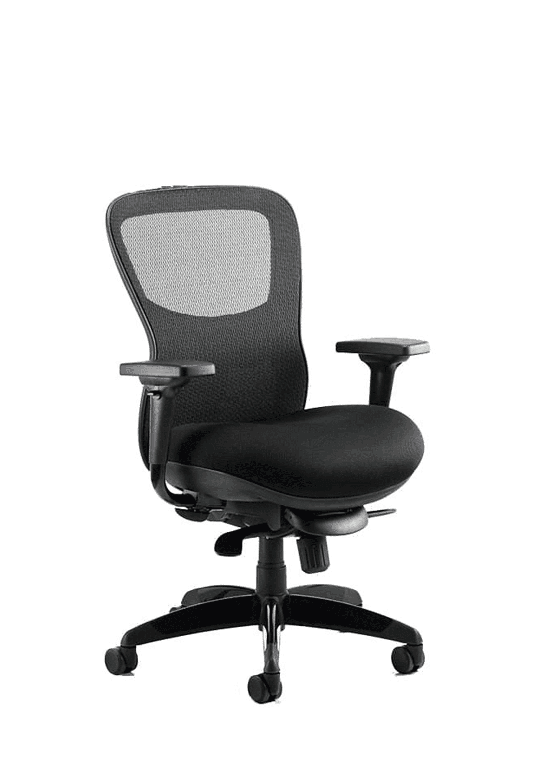 • Suitable for heavy duty contract use • Generous seat and backrest dimensions • Contoured seat and backrest • Twin lever synchro tilt multi lock mechanism • Height & depth adjustable lumbar support • Ergonomic seat slide • Weight tilt tension control • Height adjustable arms with soft pivoting armrests • Optional headrest