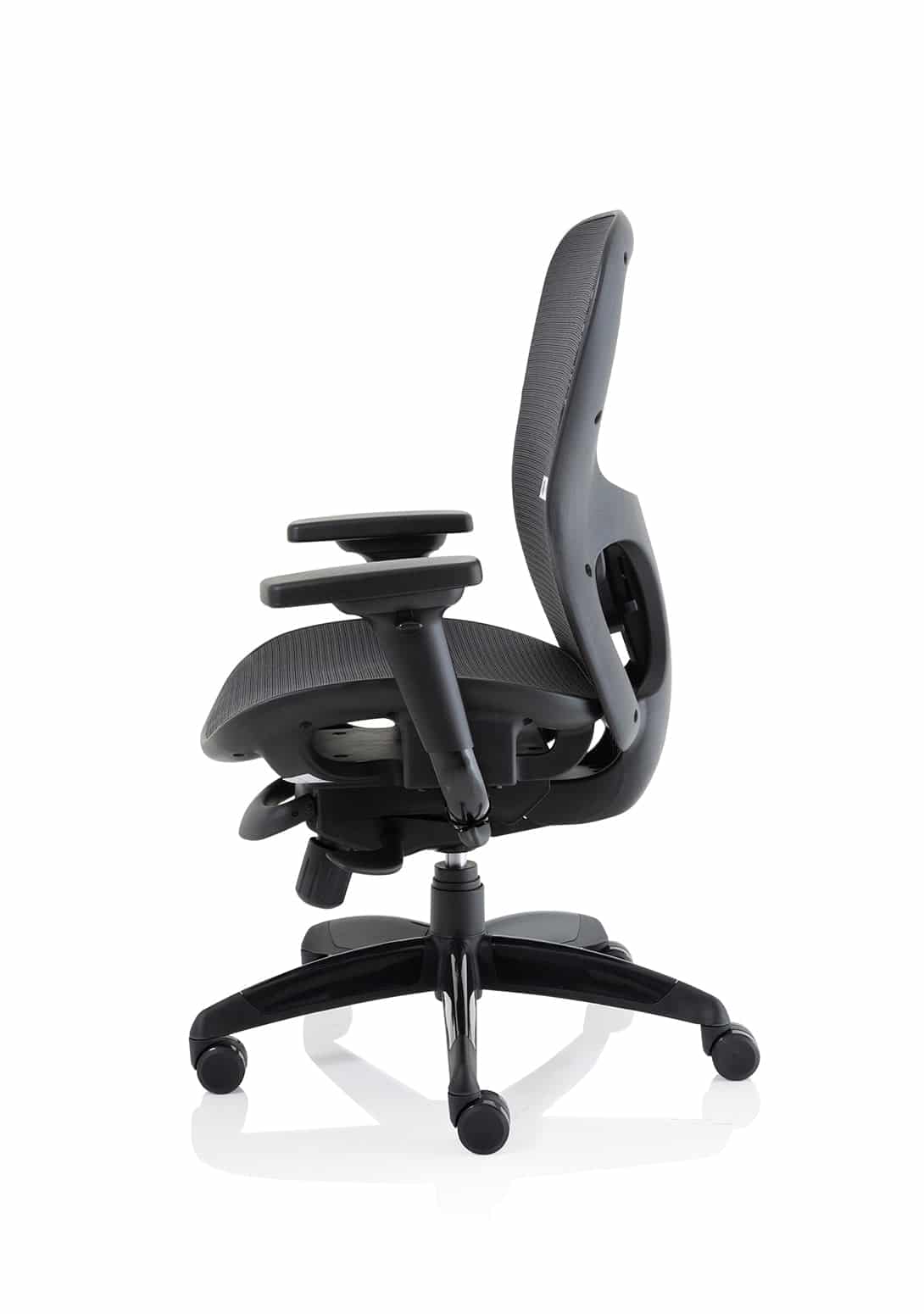 Dynamic are proud to introduce the stealth family into our range. Already a firm favourite, this superbly refined heavy duty contract chair is made to cope in the most demanding environments. Its generously proportioned seating dimensions and many adjustments mean that it will easily accommodate most users. This task range is also complemented by the matching visitor chairs which boast the same quality as their counterparts. Available in All Mesh or Airmesh seat with mesh back finish. Headrest optional.