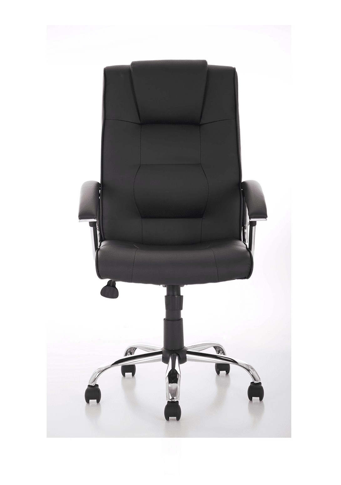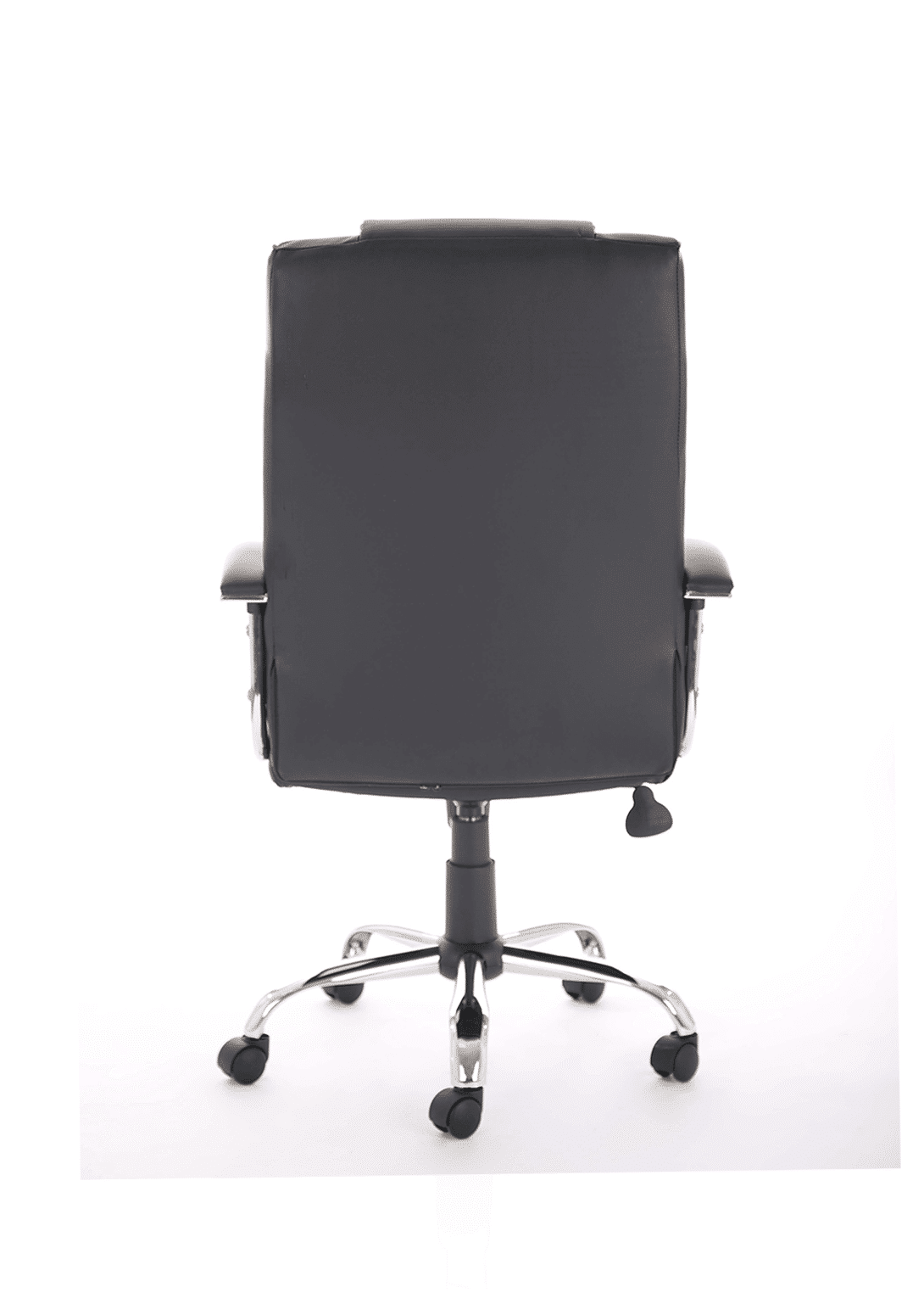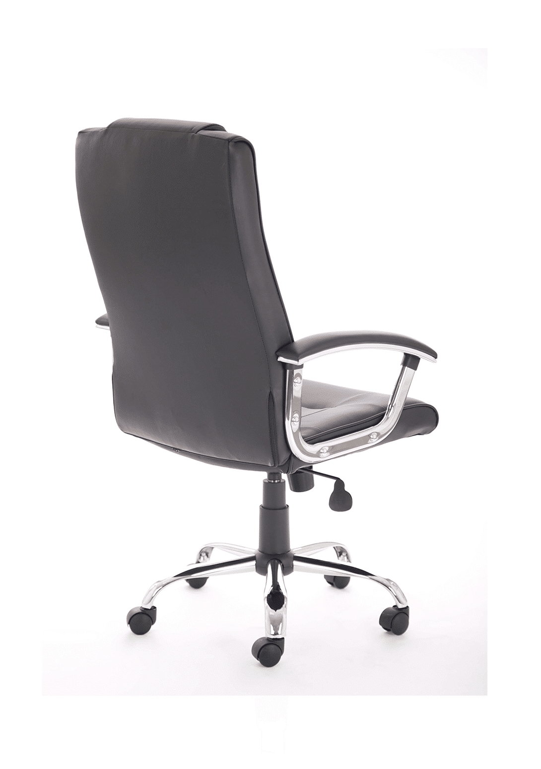• Soft Touch Bonded Leather upholsterey • Generously cushioned seat and back • Single lever lock tilt mechanism • Chrome detailed 5 star base and arms • Soft padded arms • Featured lumbar pad • Weight tilt tension control