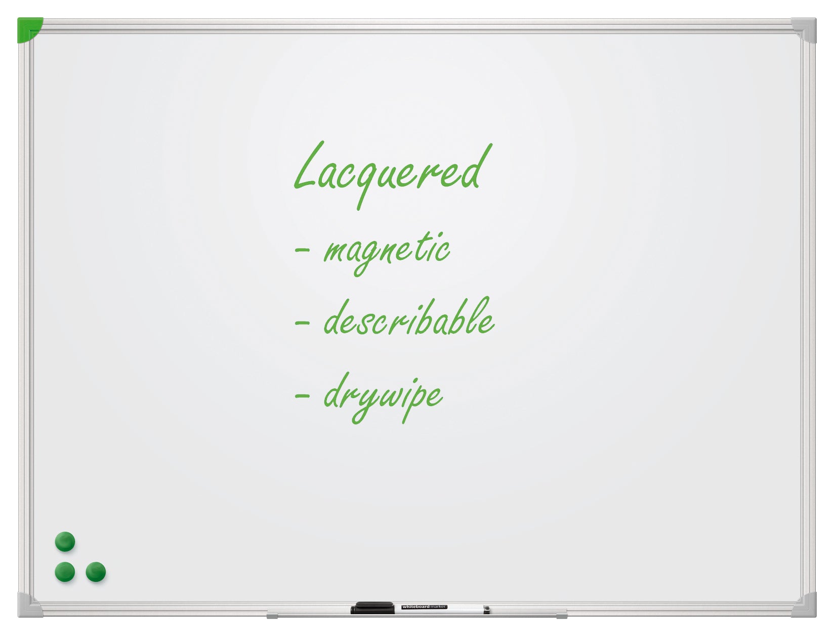 • Franken U-Act!Line ® magnetic Whiteboard lacquered steel • Sizes: 40 x 30cm, 60 x 40cm, 80 x 60cm, 120 x 80cm, and 160 x 120cm • U-act!Line ® stands for eco-friendly values and awareness • Unleash your imagination with this sturdy whiteboard, with 14mm anodised aluminium frame construction and magnetic surface • Can be used landscape or portrait to fit your needs • Recommended for regular use, this dry erase board is the perfect ally for your notes and meetings • Marker tray and wall mounting kit is included • Franken U-Act!Line ® products are produced of recycled and organic materials whilst maintaining excellent quality, durability, and impeccable design