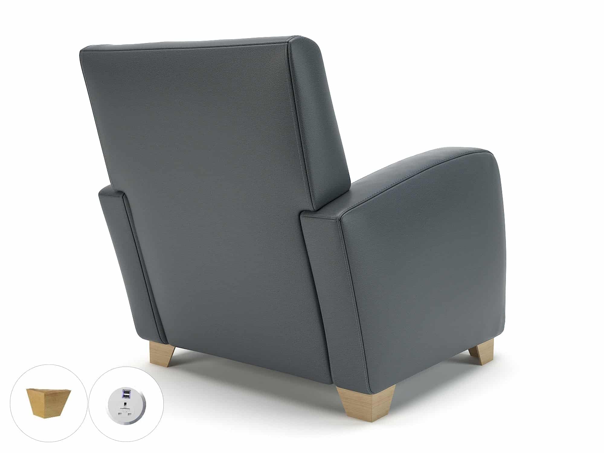• Comfort focused high back seating • Distinctive curved arms • Reversible seat cushion has removeable cover • Double stitched seams for strength and neatness • Hardwood frame from sustainable source • Reflex memory foams • Foam overlay to soften edges