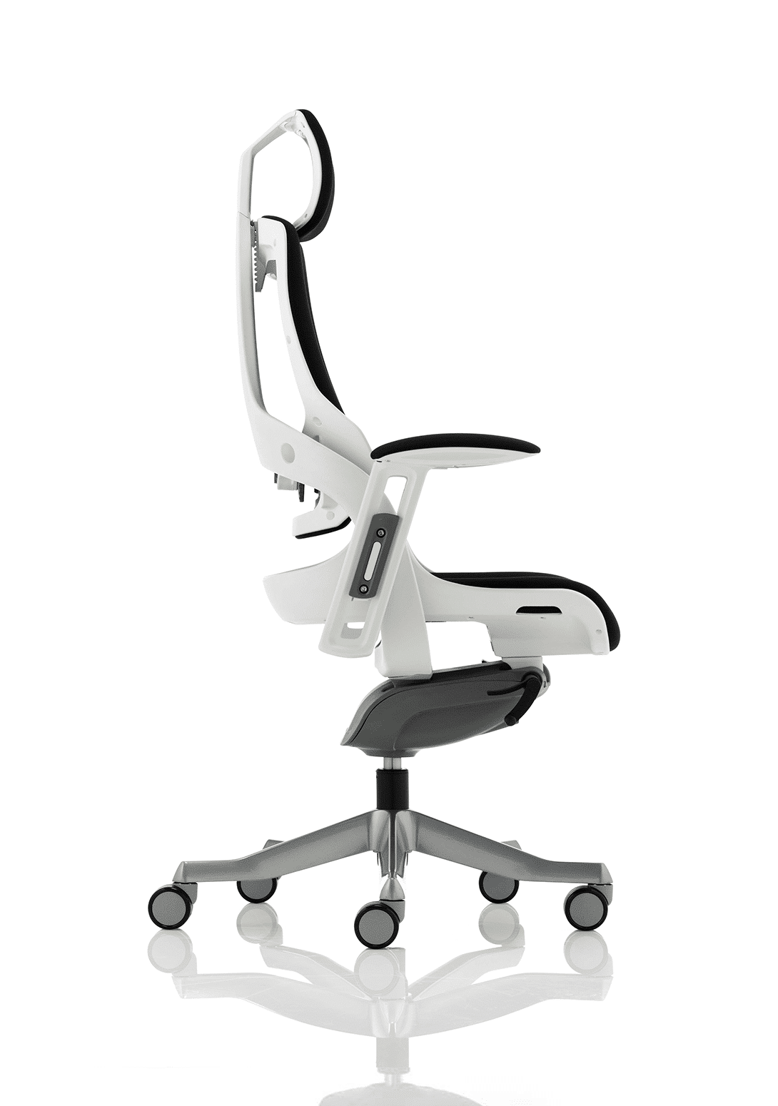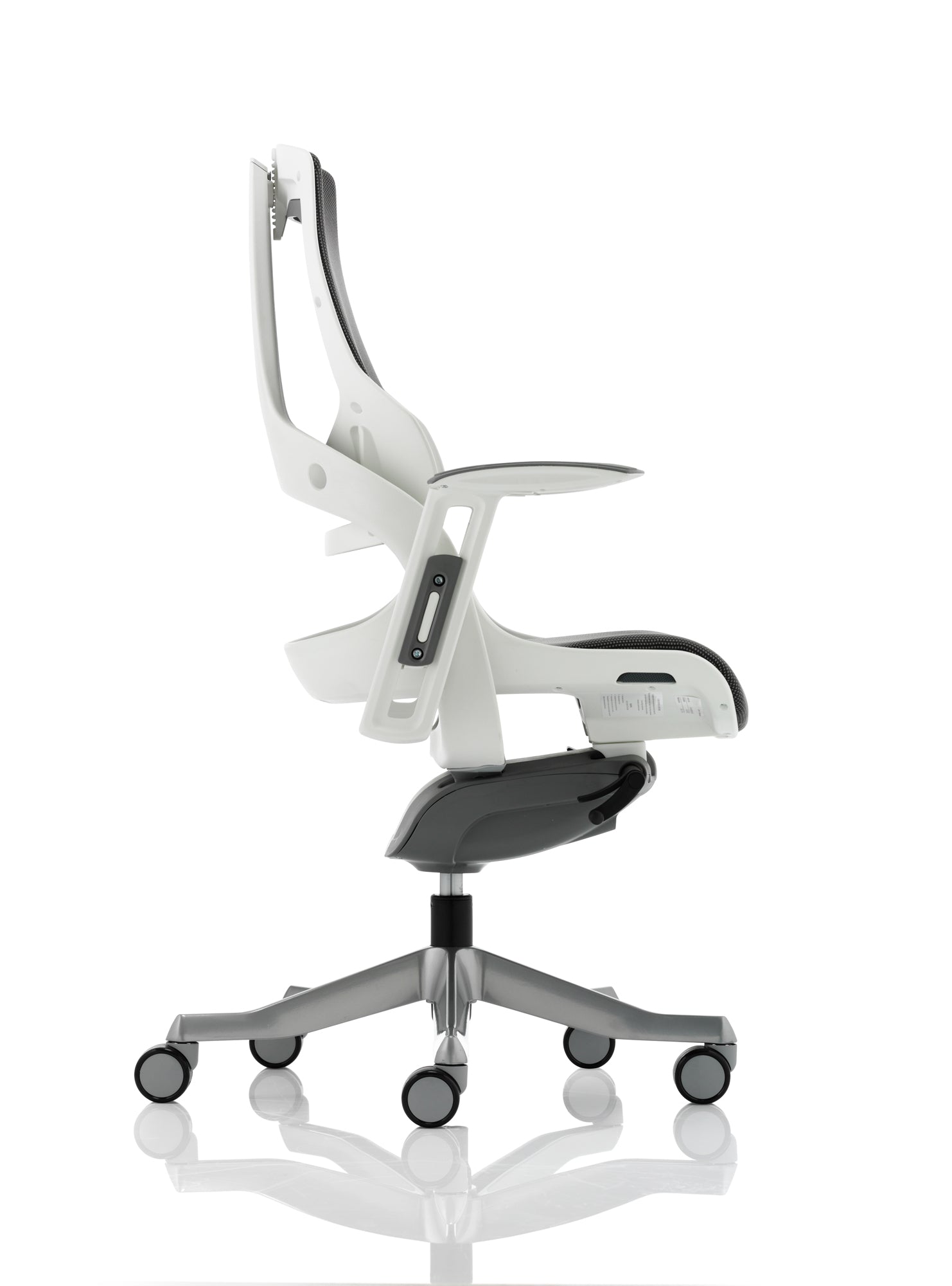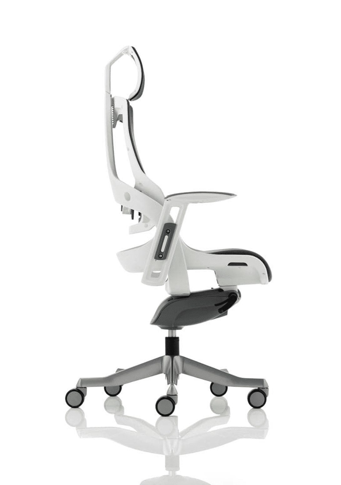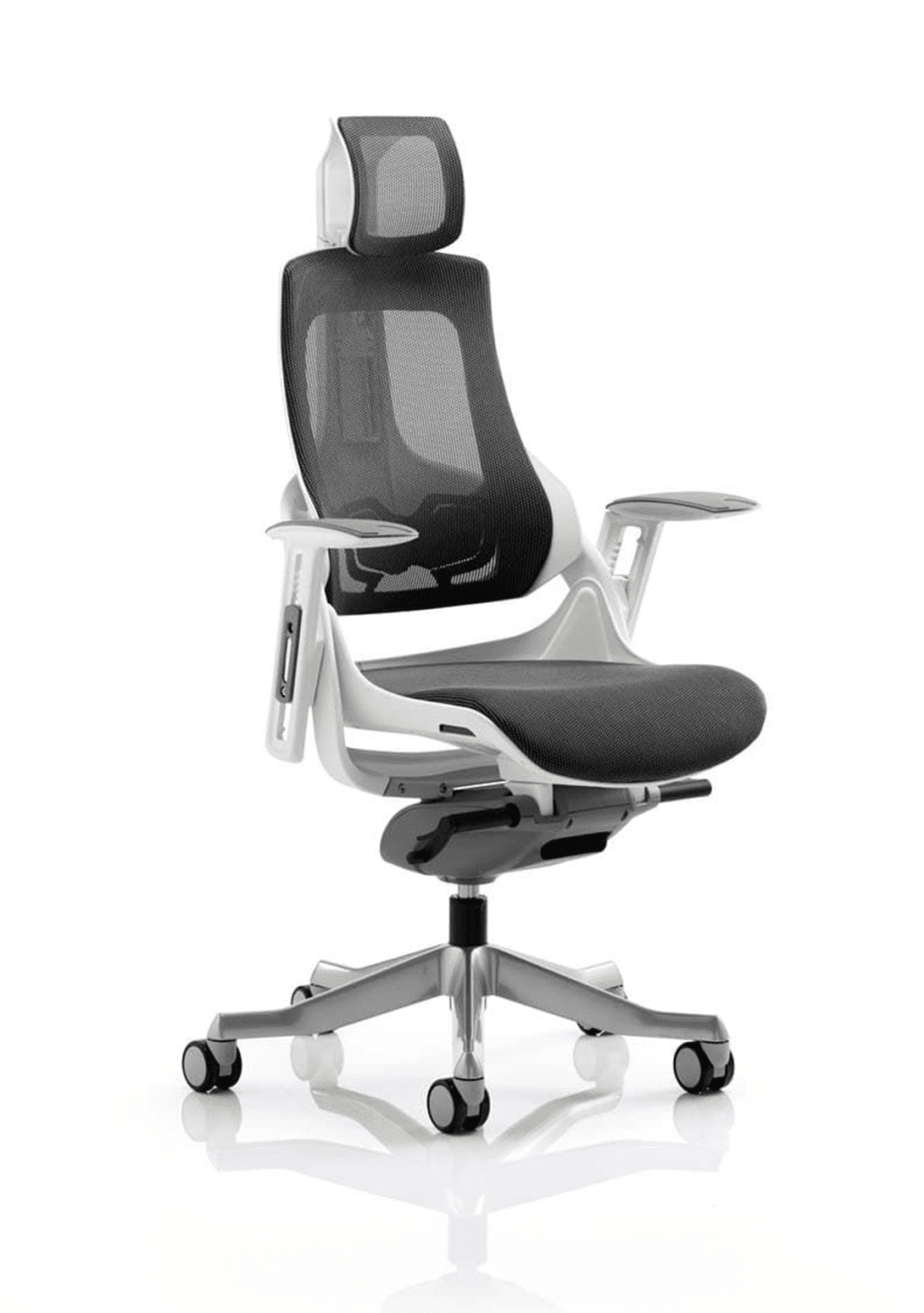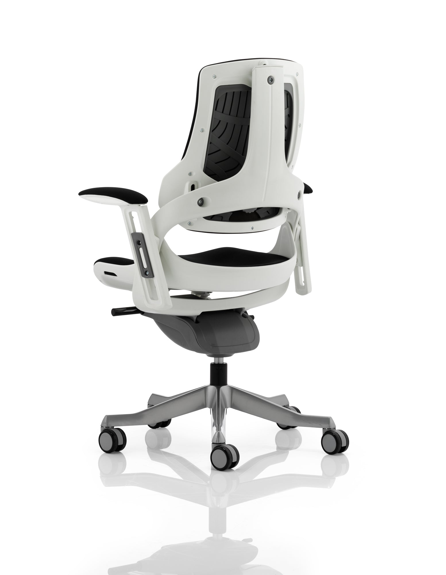Boldly going where no chair has gone before. The Zure takes you to a new comfort destination. Our unique range of this distinctive, uber stylish posture perfect seating solution has it all. There are fine mesh, fully upholstered, partly upholstered and stunning flexible elastomer options. The seat and backrest are carefully contoured to provide maximum comfort. The high quality outer skeleton wraps the user in touch point technology. Padded arm rests on the fabric and leather options provide pleasing eye-appeal whilst the elastomer versions have colour coded armrests. The polished aluminium base houses highlighted castor detailing.
