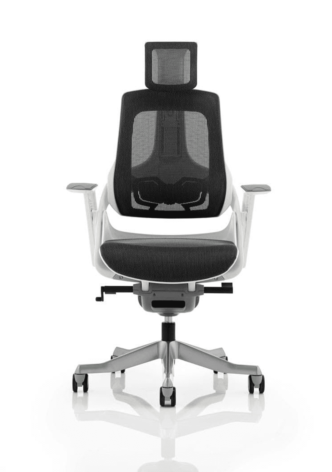 • Large contoured seat and backrest • Orthopaedic designed frame • Synchronised glide tilt mechanism • Anti-shock tilt function • Depth adjustable lumbar support • Height adjustable backrest • Weight tilt tension control • Multi function arms: height adjustable and pivot arms • Aluminium 5 star base